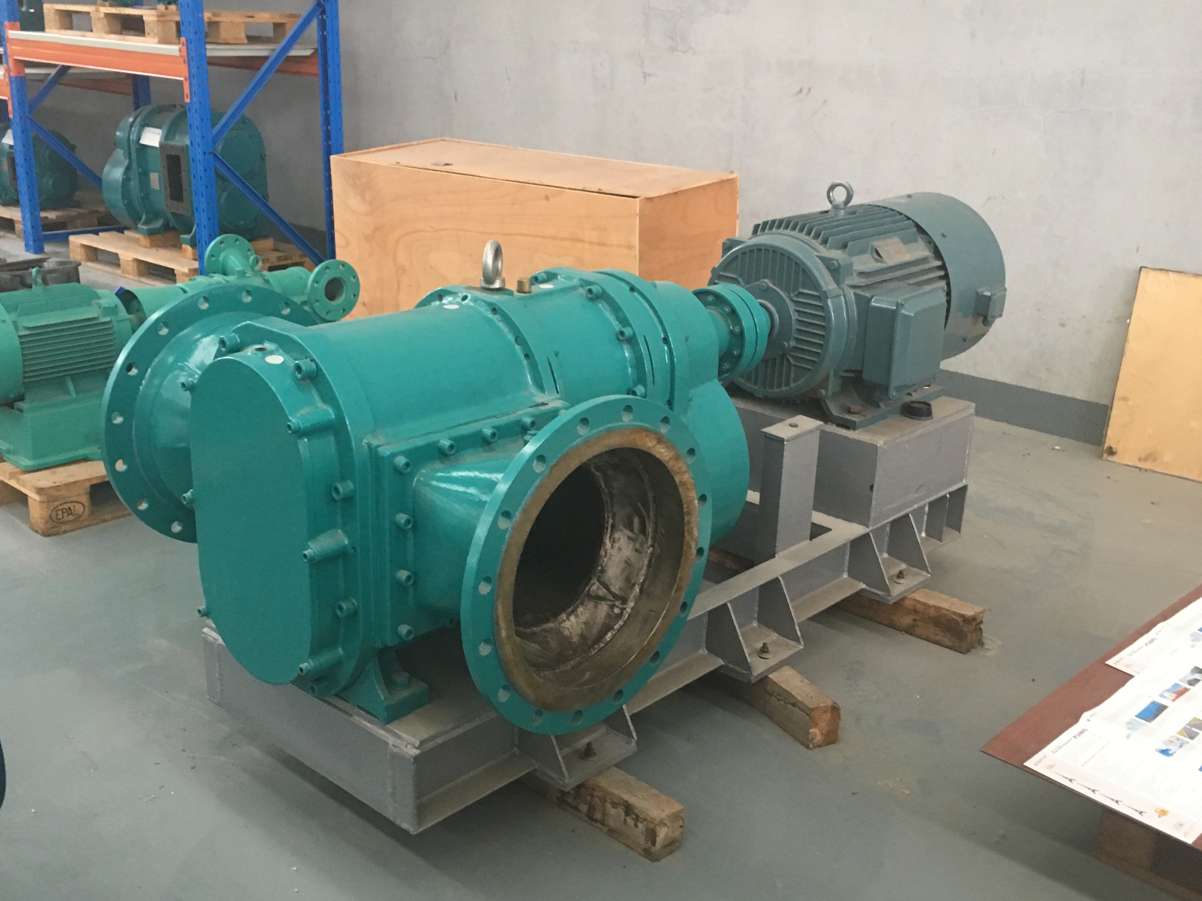 在板框進(jìn)泥過程中,板框系統(tǒng)內(nèi)的壓力由低到高變化,流量相應(yīng)由大到小變化。原系統(tǒng)采用兩臺(tái)可變頻的螺桿泵進(jìn)行污泥輸送,泵效率低,達(dá)不到板框進(jìn)泥工藝要求,脫水系統(tǒng)無法正常運(yùn)行。